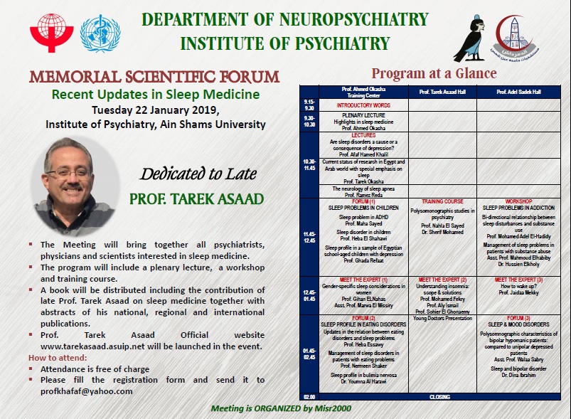 الثلاثاء 22 يناير 2019، مركز الطب النفسي- الدمرداش